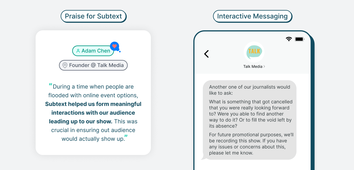 Talk Media used Subtext to make a virtual event feel interactive—building momentum with questions, polls, and personalized responses that fed into the performance itself.