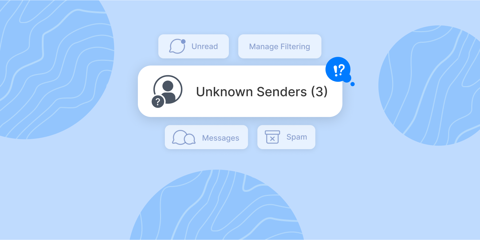 • Unknown senders are filtered into a hidden inbox with no notifications.